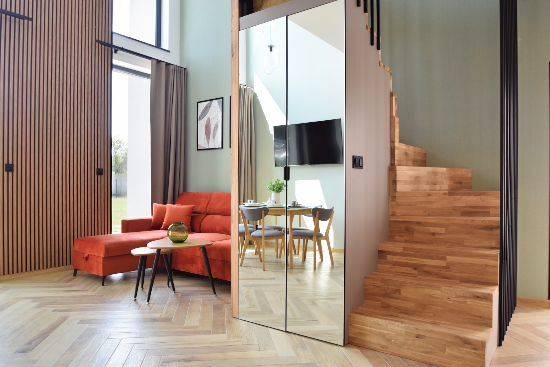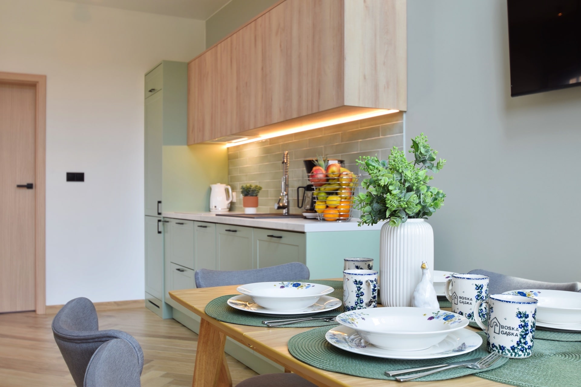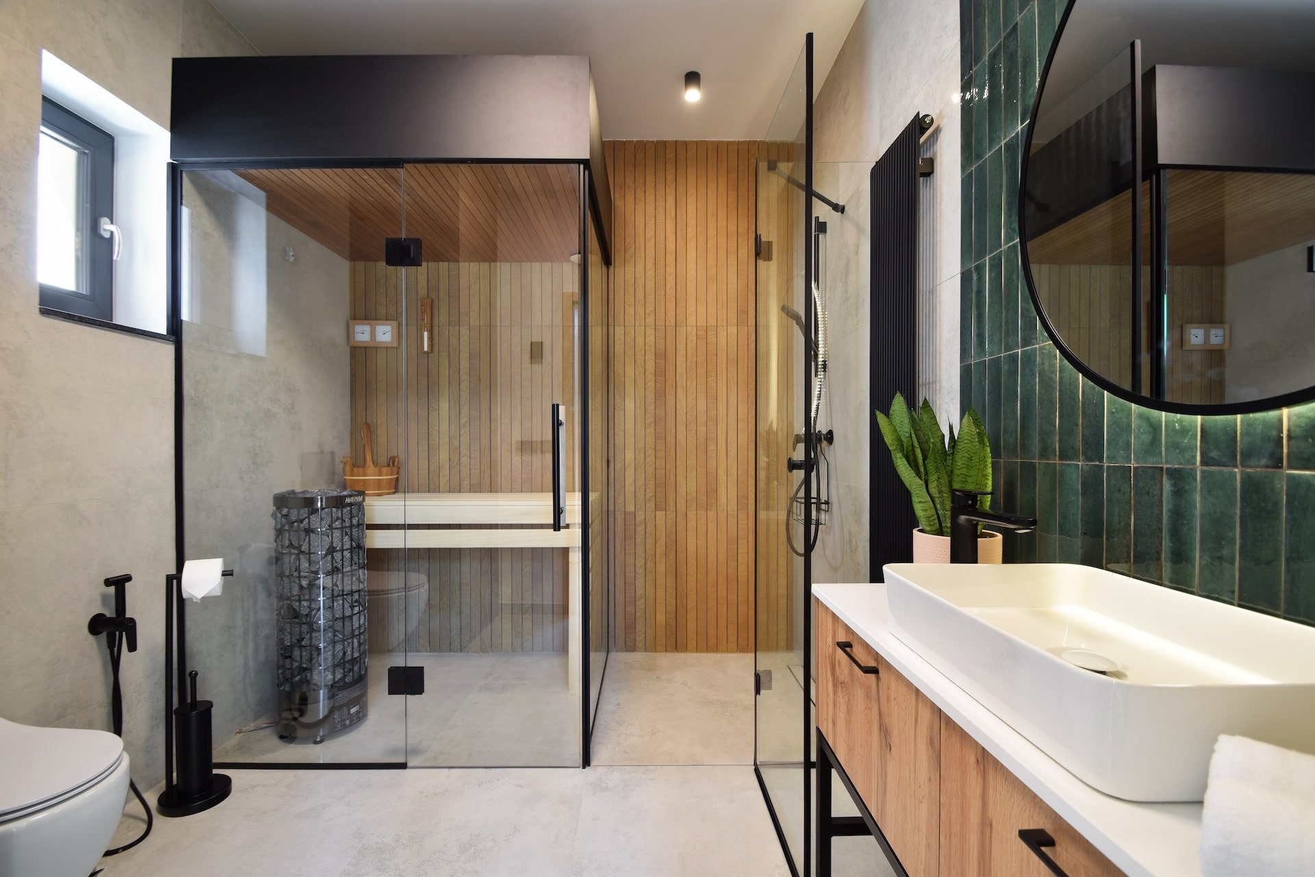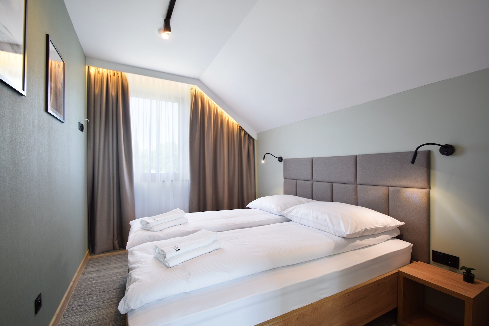 Architektura naszych budynków łączy ze sobą efektowne przeszklenia od południowej strony oraz przyjemne dla oka kolory ziemi. Wewnątrz spotkamy drewno, zieleń, beże i czerń, których połączenie pozytywnie oddziałuje na zmysły człowieka oraz pozwala się w pełni odprężyć i zrelaksować.